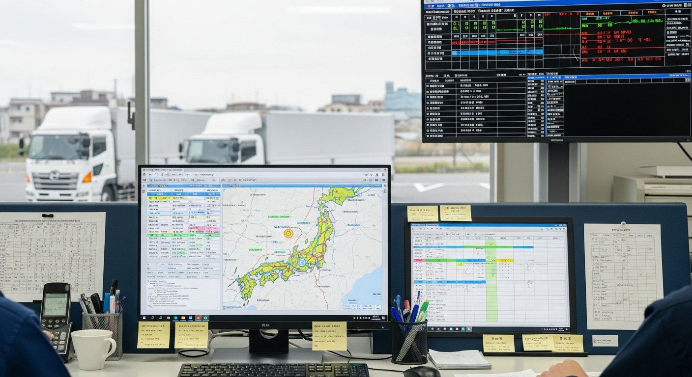 運行管理とは、運送会社のドライバーと車両を管理し、安全運行を確保する業務です。具体的には、ドライバーの勤務時間・健康状態の管理、車両の点検・整備状況の把握、無理のない運行計画の作成、事故やトラブル発生時の対応などを行い、輸送の安全と効率を支える重要な役割を担います。