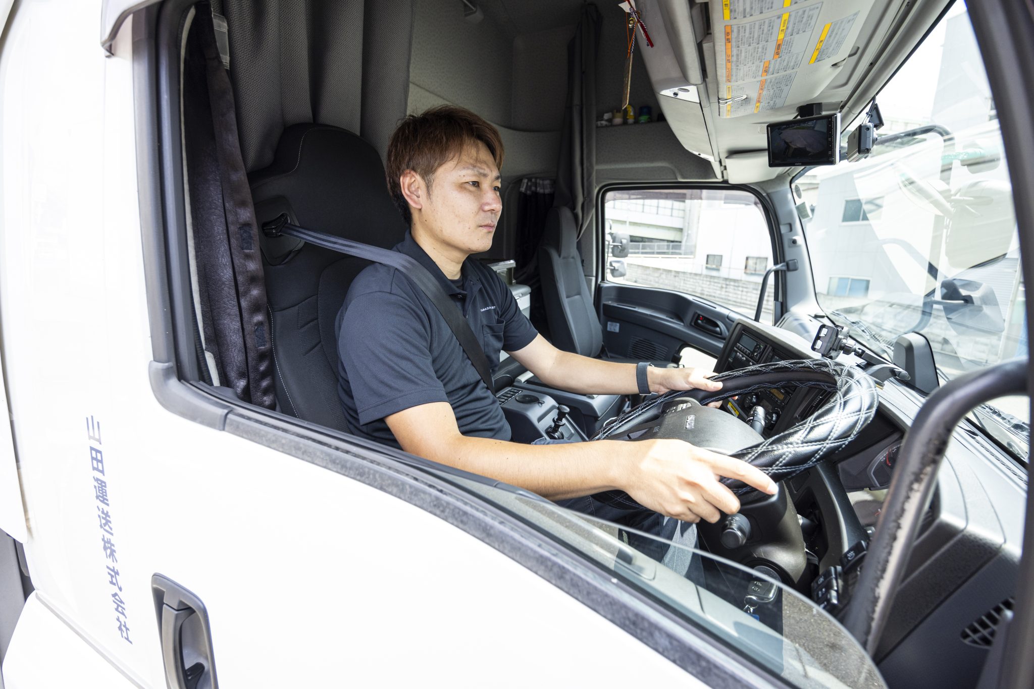 以前の接客業から、憧れていた大型ドライバーの仕事に転職しました。運転することがとにかく好きで、マイペースで仕事ができるので、自分にすごく合っていると感じています。車両も自分好みにシンプルで快適な環境にしているので、落ち着いて安全運転に集中できますね。